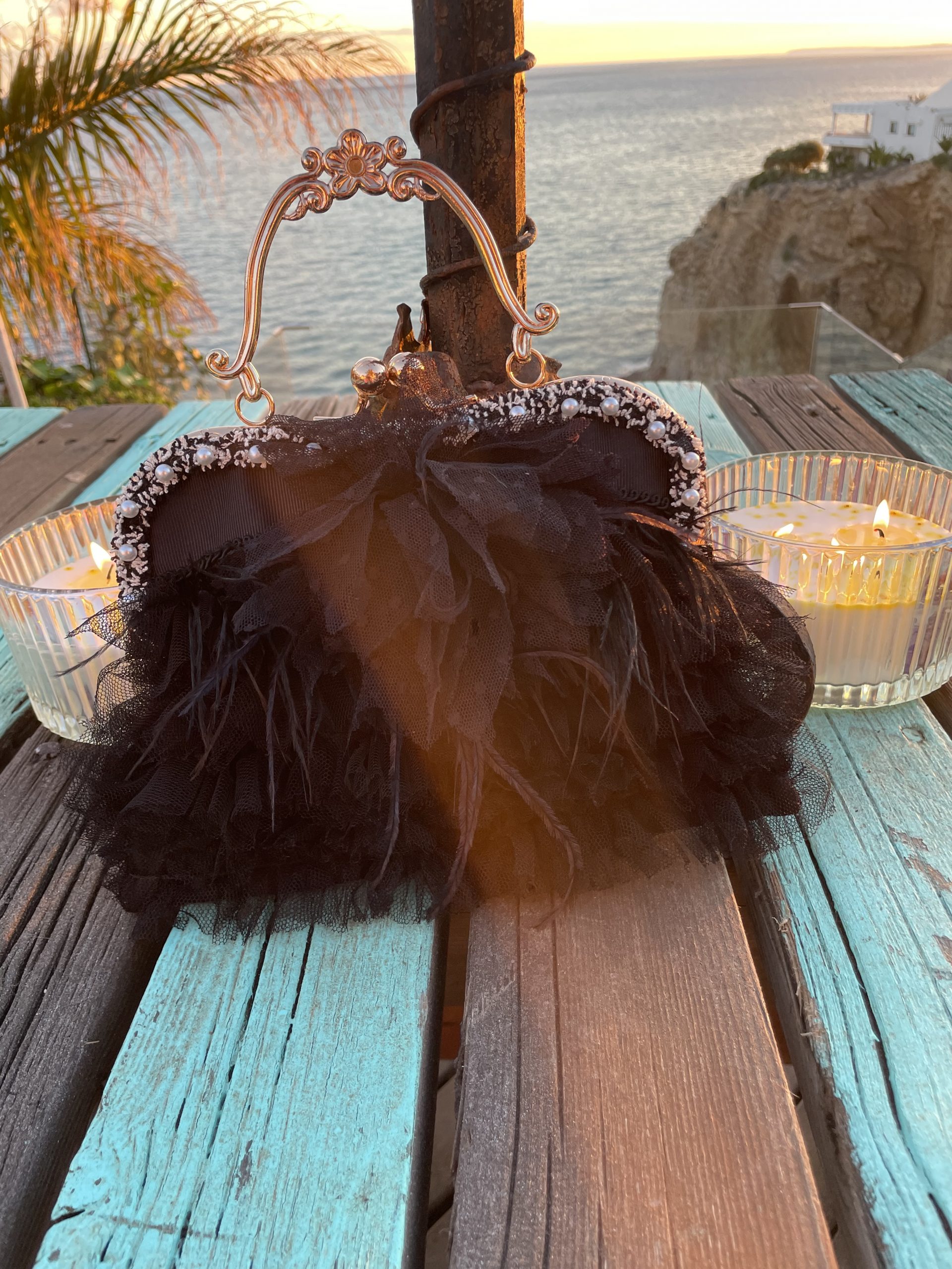 Bolso hecho a mano con tejidos y pasamanería exclusivos.